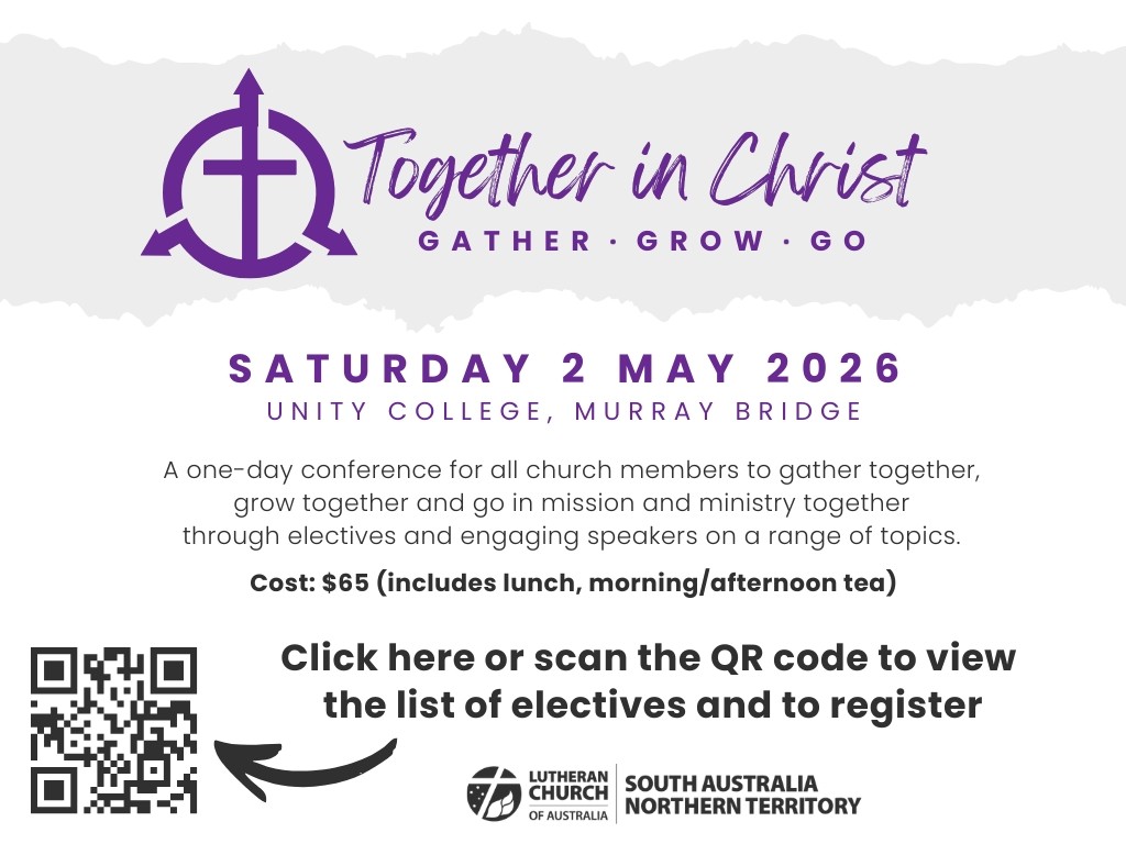 All the details can be found here: https://sant.lca.org.au/events/together-in-christ/ including resources to share in your bulletins, service order PowerPoint slides, and flyers to distribute to members. These resources have also been attached to this email. Please promote this as widely as possible.